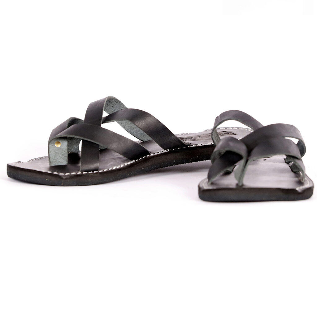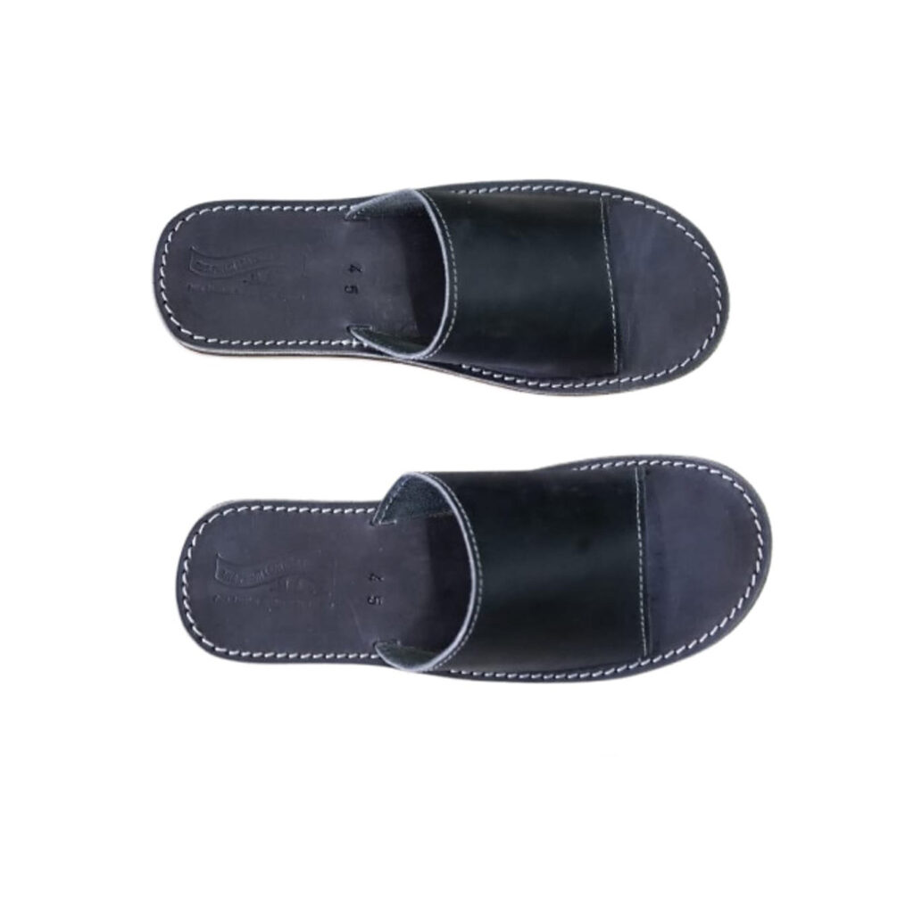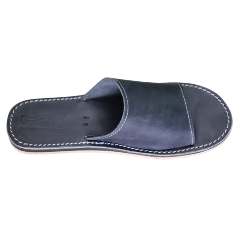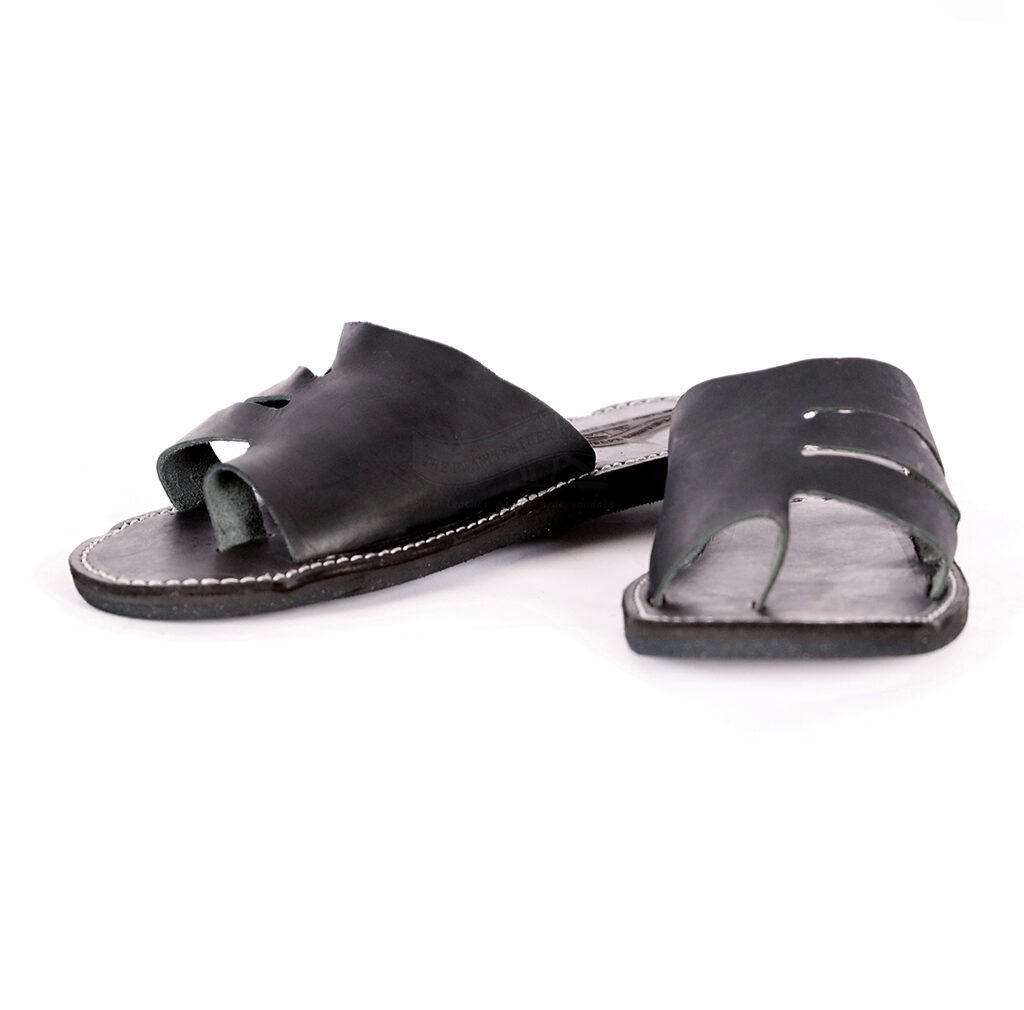 Black leather slide sandal with flop,side cuts and an extension to the big toe.Comfy leather lining with long lasting outer sole. Our stylish sandal is named after an animal that is best known for its awesome giant horns that grow from their snouts. It symbolizes strength, authority and protection.
